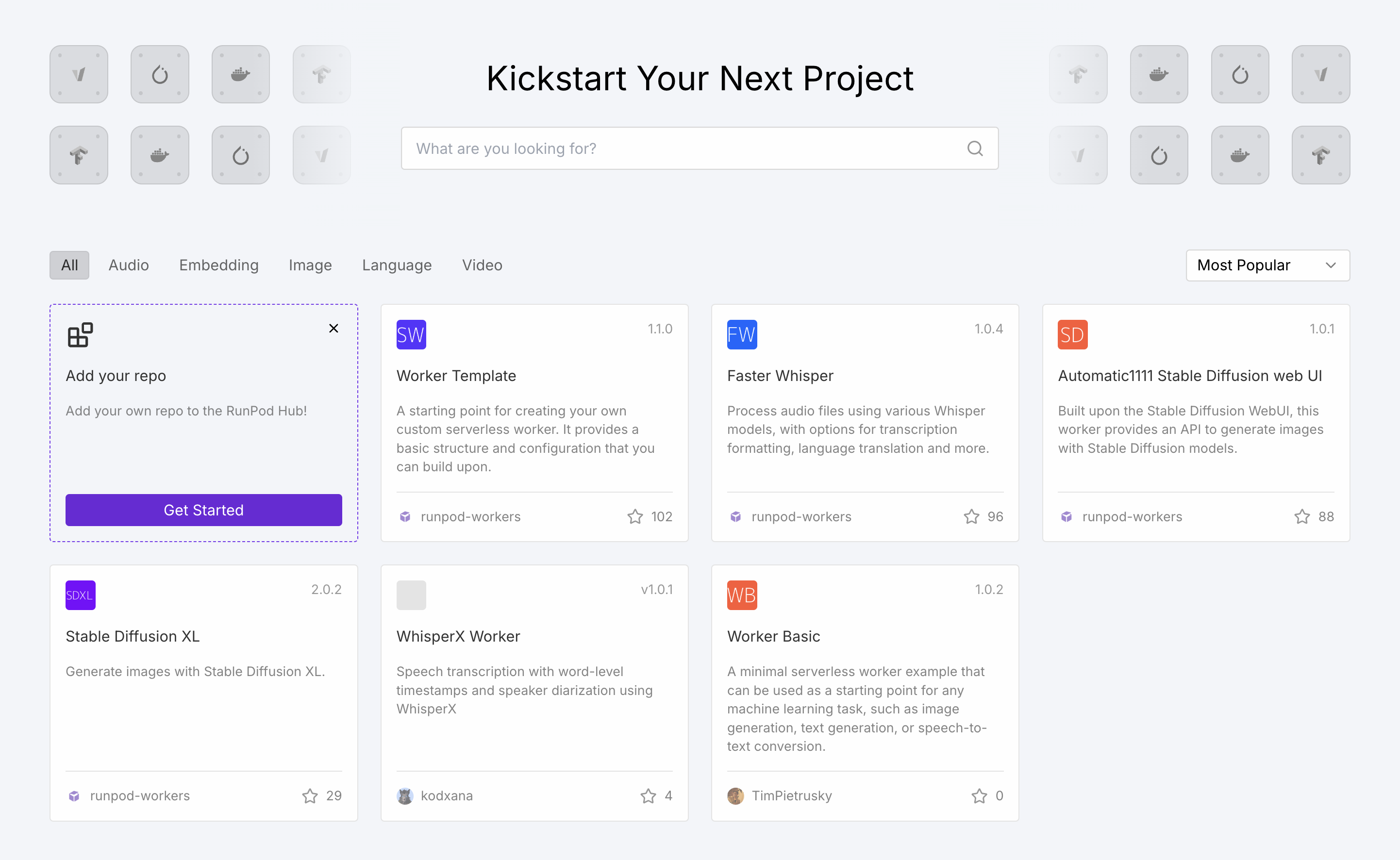 - Find production-ready AI solutions: Discover vetted, open-source repositories optimized for Runpod with minimal setup required.